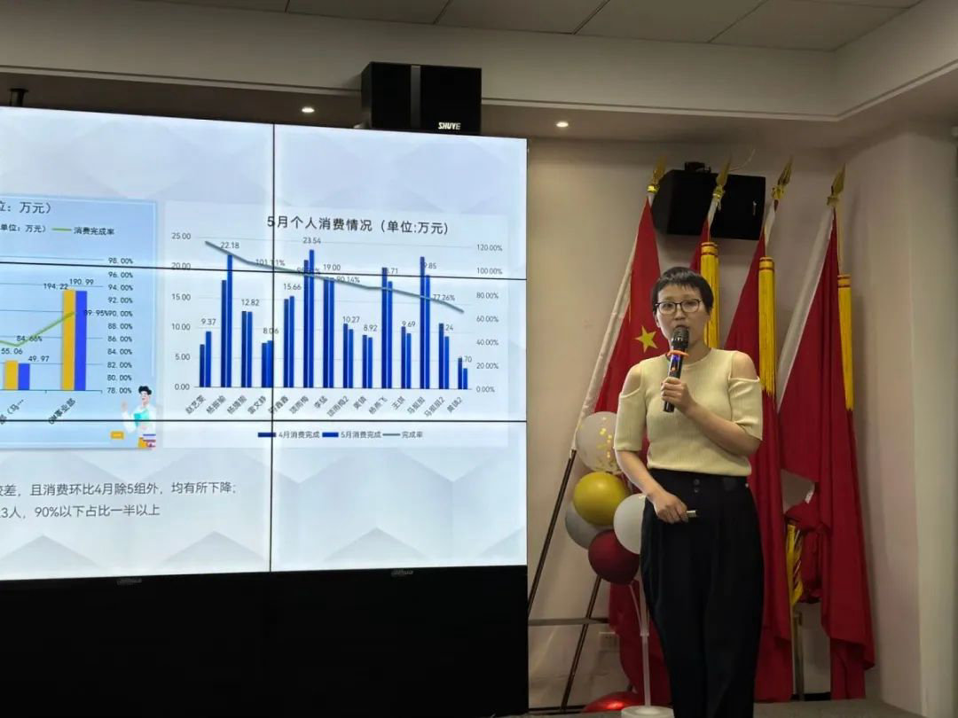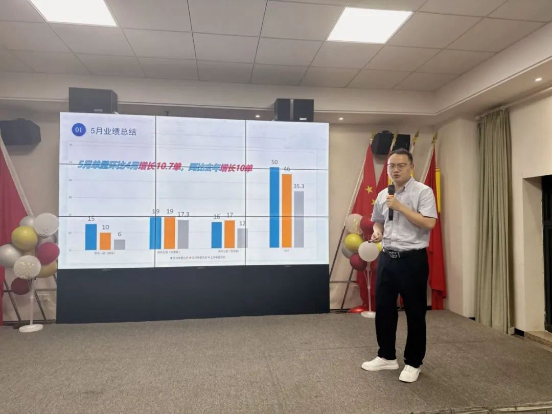 董事长傅艳萍女士在会上对各部门6月的成绩提出殷切的希望,希望各部门总监可以找到增效办法,帮助大家在6月可以迎难而上,创造新的业绩高峰。
