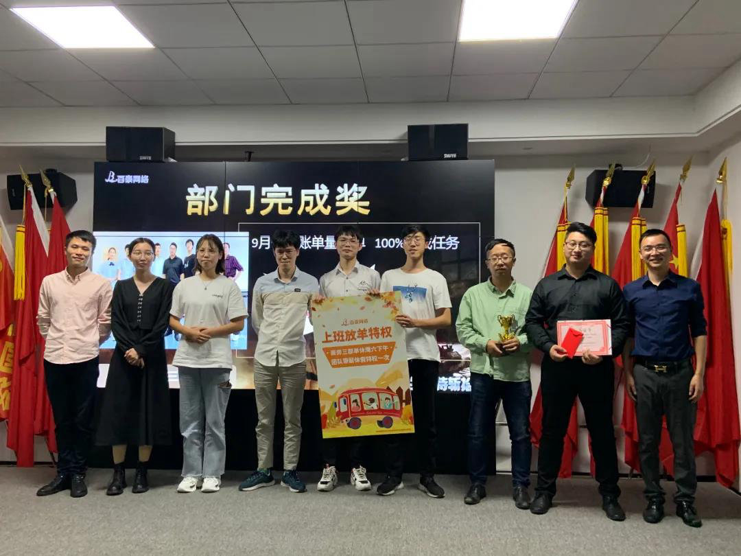 2020年10月8日晚,“鏖战百日,待斩拾月”百泰10月员工大会隆重召开,百泰全体家人参与了此次会议,会议在各部门士气展示中拉开序幕。此次晚会总共分为四大环节。