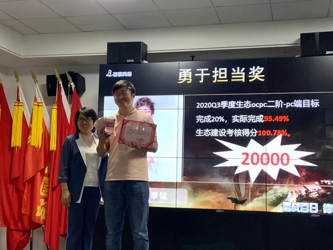 每月员工大会的优秀员工颁奖,不仅仅是分享与喝彩,更重要的是一种精神鼓舞与能力的肯定,这种精神力量激励着每一位为梦想打拼的家人。特别是客户中心李猛敢于担当,主动接下OCPC项目,并带领小伙伴超额完成目标。百泰鼓励全体小伙伴以此为榜样,敢于承担责任,敢于接受挑战,不管结果如何,我们本身就已经赢了!