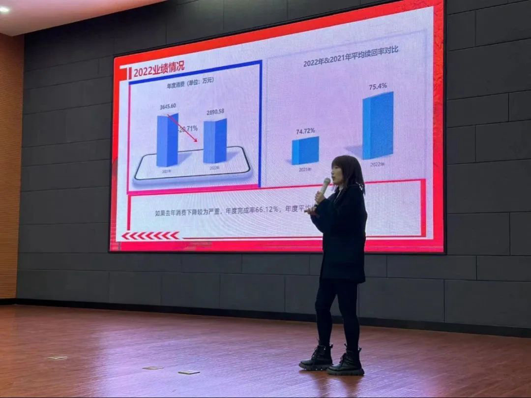会议尾声,掌门人傅艳萍女士为本次大会做了总结,同时也说出了自己2023年的目标,同时希望我们可以在2023年成为一支更加有狼性、更加有自信,更加热情、更加专业的团队,通过自己的努力拿下23年的目标。