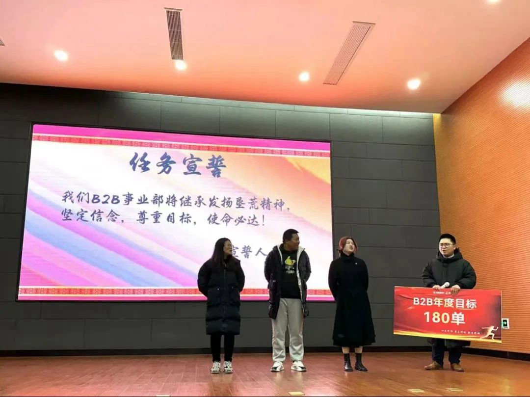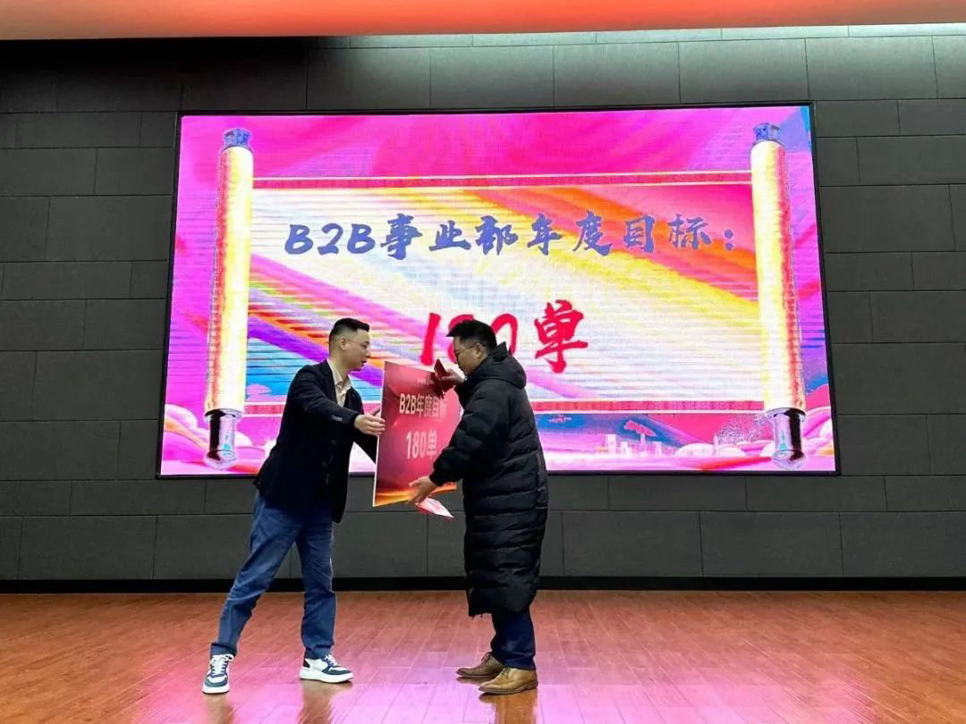 每一次出发都要带着明确的目标,我们因心之所向,必身之所往,故终至所归。总经理郑云龙给各业务部门授予任务牌,每个人也对自己的目标做了宣誓,表达出自己的信心和决心。