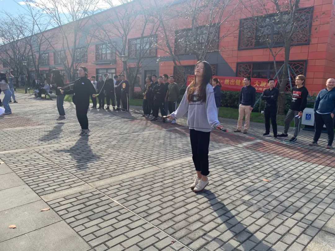 比赛共分为单人跳、花样接力跳、集体跳等多种形式,全体积极参与,现场参赛队员大显神通,欢声笑语不断!