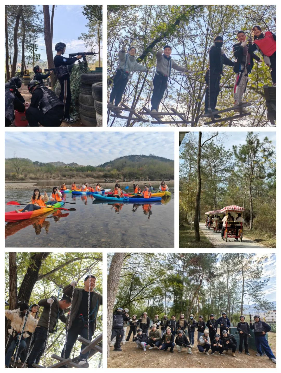上午是自由活动时间,有着丰富的户外游戏项目:皮划艇、真人cs、丛林穿越、绿道骑行等。