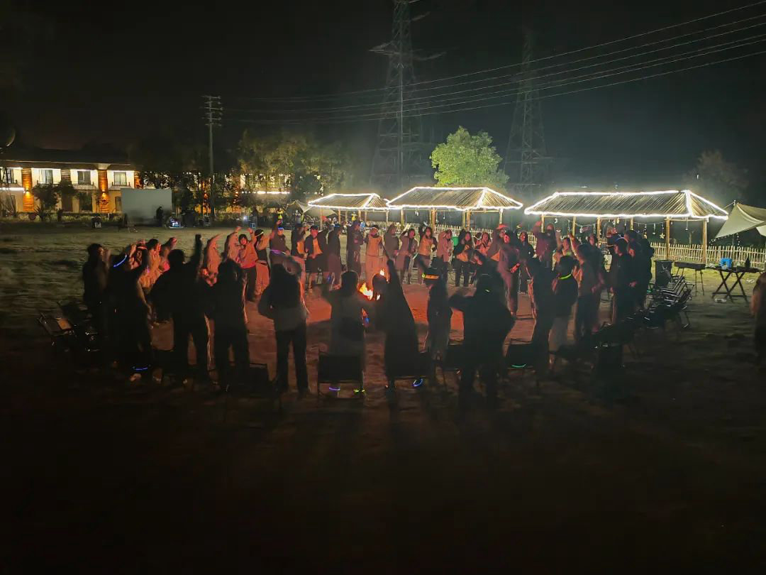 随着降临的暮色,天空像是被裹了层幕布,暖色调的橙黄色灯光像是点缀在幕布上的高光,治愈而温暖。本次的团建也逐渐接近了尾声。