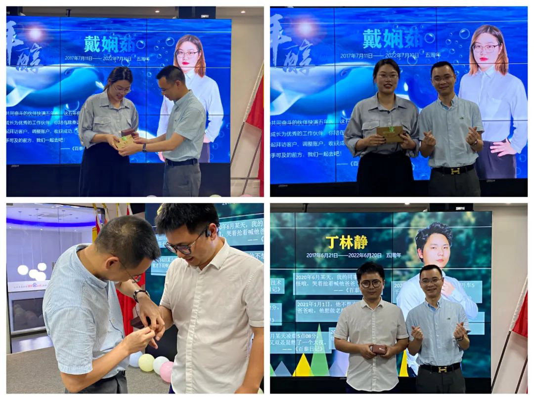 今晚,有两位小伙伴迎来了在百泰的五周年。他们陪伴百泰度过五个春秋,而百泰也见证了他们人生的各个阶段,买车买房到娶妻生子。相信在未来,还会有更多的三年、五年。