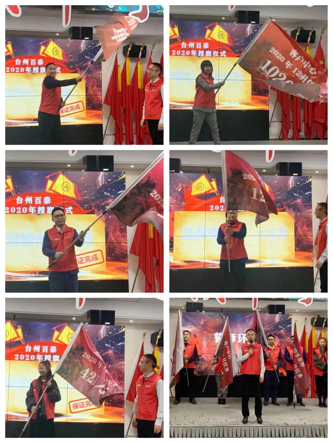 指标达成,离不开龙虎之师,乘着现场高昂的士气和热情, 百泰人一鼓作气,开启授旗仪式,也标志着我们各部门的老大重任在肩,需要承担和带领一整个部门小伙伴去冲刺。