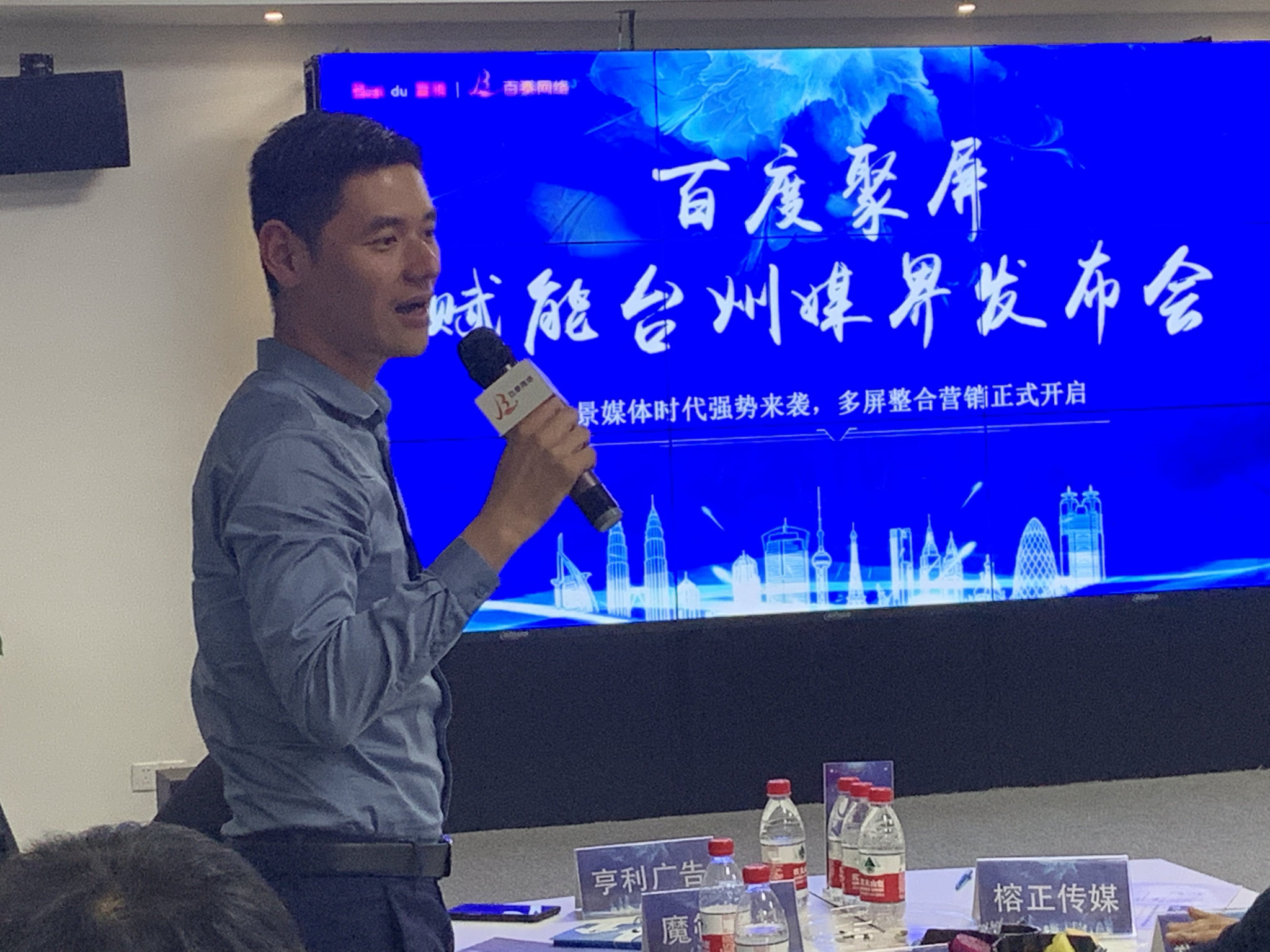 10月19日晚,台州百度营销服务中心邀请了台州20多家广告传媒大咖共聚一堂。百泰创始人amy和百度营销专家与各媒体广告同仁分享百度产品整合营销思路,并将百度聚屏这个产品开放给大家,希望能资源共享,互惠互利,共创美好新未来。